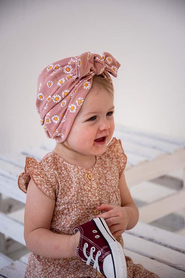Przewiewna wersja Gorra, czyli nakrycia głowy z kokardką z przodu będące połączeniem turbanu z czapką. Idealna alternatywa na lato dla chust na głowę. Czapka jest ręcznie szyta z cienkiej bawełny.