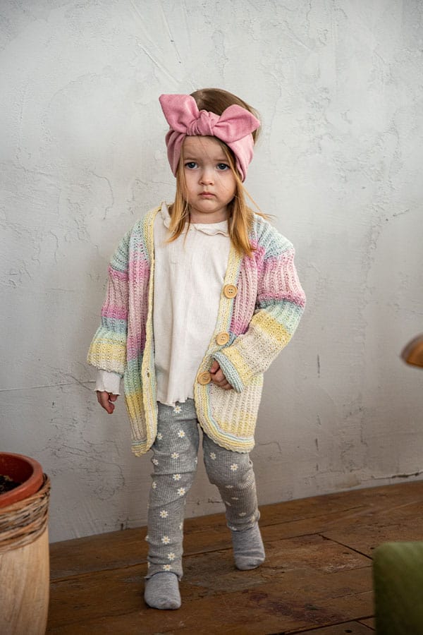 Lniana opaska dla dzieci w kolorze różowym. Każda opaska jest na gumce, dzięki temu dopasowuje się i nie uciska głowy.