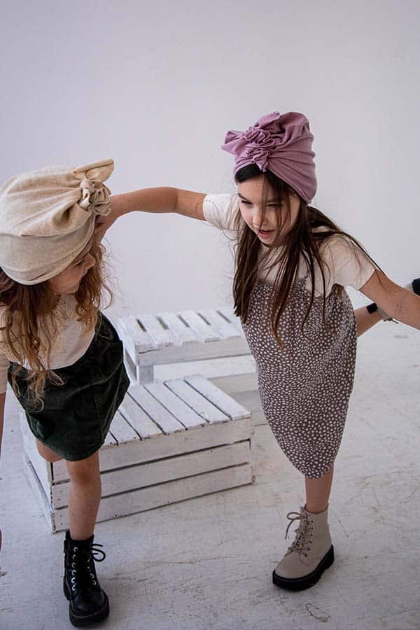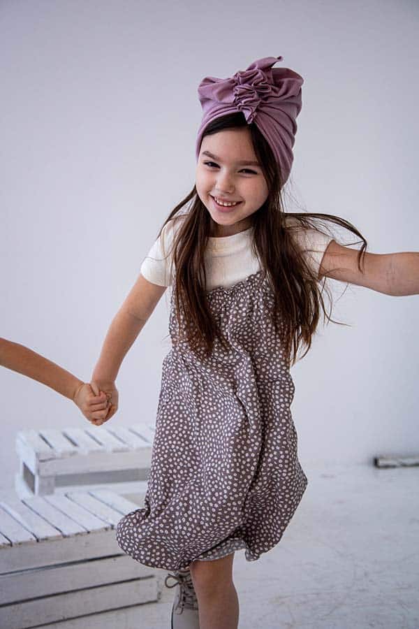 Turban z bawełny, lnu i elastanu w naturalnym, różowym kolorze.