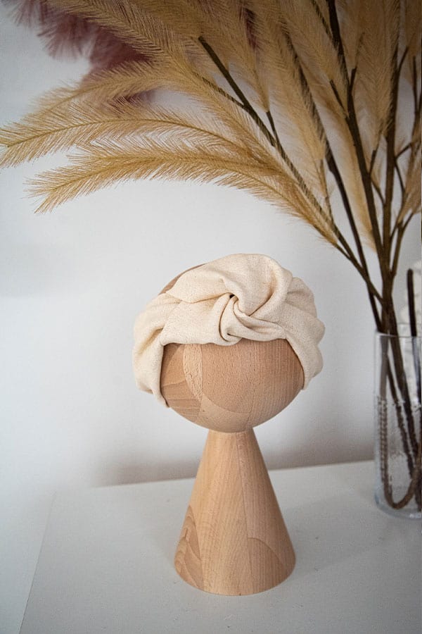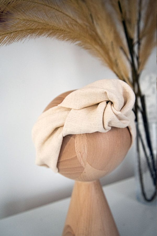 Opaska z bawełny, lnu, elastanu i wiskozy w naturalnym, beżowym kolorze.