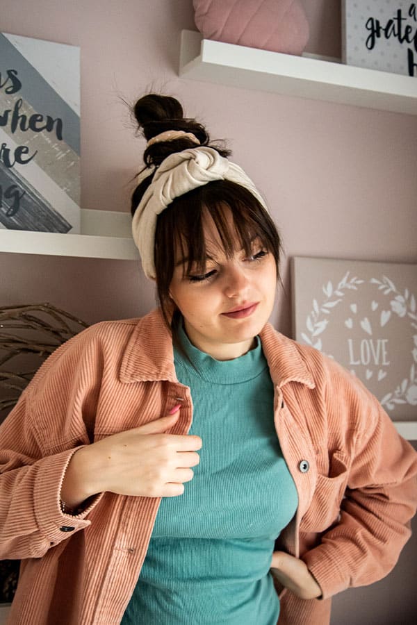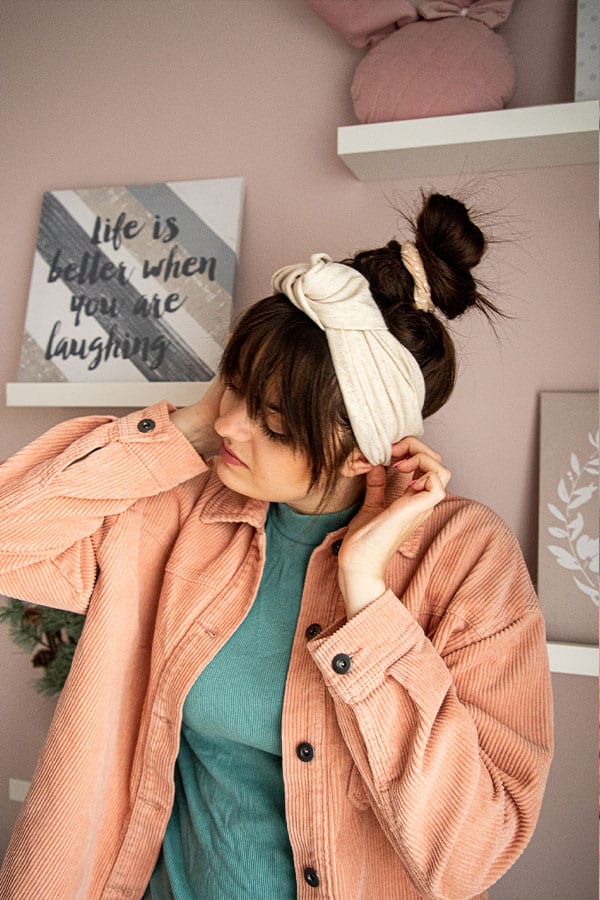 Zmierz głowę taśmą krawiecką tak samo jak nosisz opaski, czyli od góry głowy tuż nad czołem, pod skosem na wysokości uszu tak, tak żeby tył opaski był bliżej karku niż czubka głowy. Pamiętaj, aby w trakcie mierzenie ani przesadnie nie naprężać miarki, ani nie pozostawiać luzu.