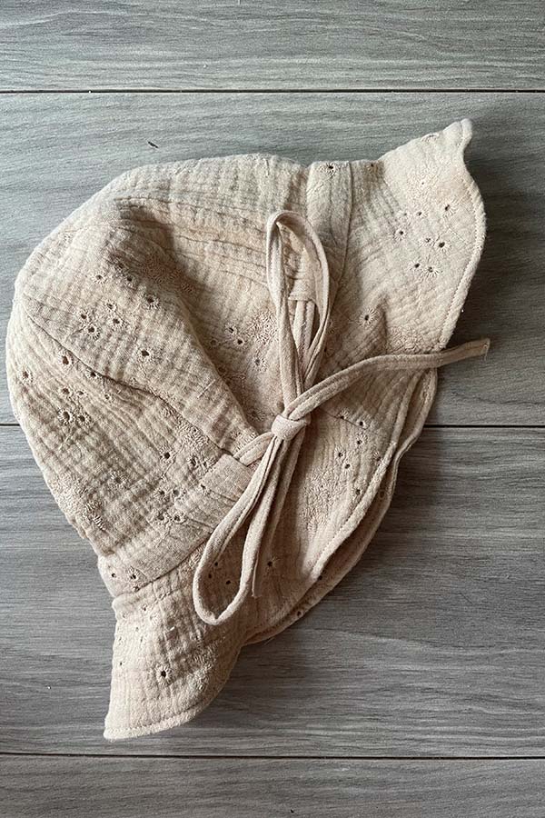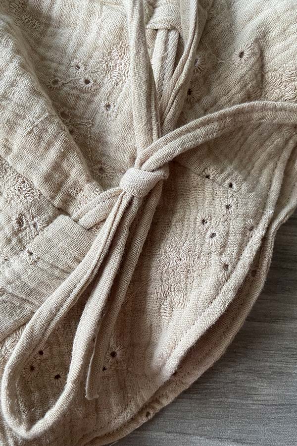 Kapelusz wykonany z cienkiej bawełny z charakterystycznymi wcięciami, sprawdzą się fantastycznie latem. Wszystko dzięki materiałowi kapeluszy, to 100% muślin bawełniany zapewnia, że skóra oddycha i nie ma obawy przegrzania lub nadmiernego pocenia.